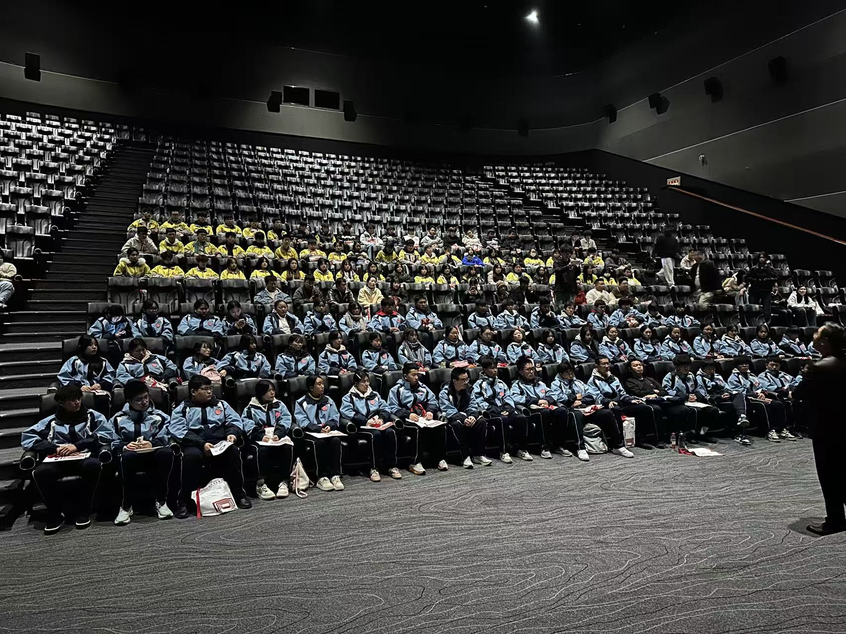 为了进一步让学生深度体验我校软硬件配备,师生们在万画影城,师生们共同观看了经典励志影片《追梦赤子心》。这部影片讲述了身材瘦小的鲁迪通过不懈努力,进入梦想中的圣母大学橄榄球队,并最终由替补变为正选队员的故事。影片中"为梦想全力以赴"的精神深深打动了在场师生,同学们沉浸在感人至深的剧情中,被主人公的坚韧精神所打动,这场观影活动,如同一堂生动的生涯规划课,极大地激发了同学们为理想大学而努力拼搏的内在动力。