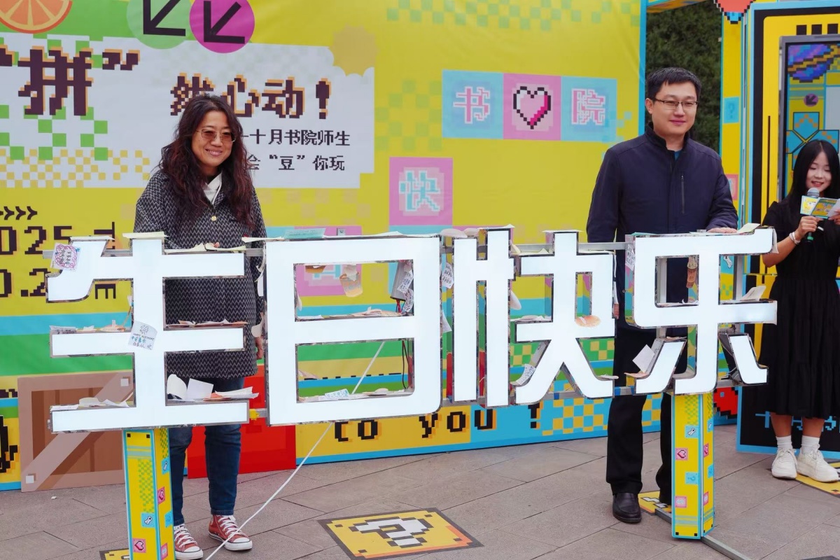 “快看,这个布艺小蛋糕是我自己缝的!”“哇,你背后的便利贴祝福好暖心!”……十月的无边书院B栋一角,化身专属“寿星副本”的互动乐园。签到处的专属手环是“入场密钥”,手绘任务地图标注着副本动线,手持这两样“装备”,师生寿星们有序踏入这片被快乐与温情填满的空间,热闹又温馨的场景扑面而来。