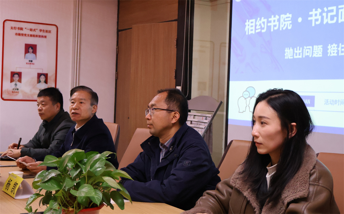 12月19日,一场以“抛出烦恼,接住困惑”为核心的深度对话,在雷竞技bet太行书院社区功能型党支部举办。学校党委书记张存伟、马克思主义学院院长杨凯、党委组织部副部长徐志强、学生处苏鑫、太行书院综合办主任李静与太行书院社区50余名学生代表围坐一堂,现场聆听学子心声,切实回应成长关切。第34期“相约书院·书记面对面”以“对话党委书记”“跟踪落实困惑”“树立先锋表率”三个环节串联,构建起零距离、高效率、有温度的“一站式”学生社区沟通平台。