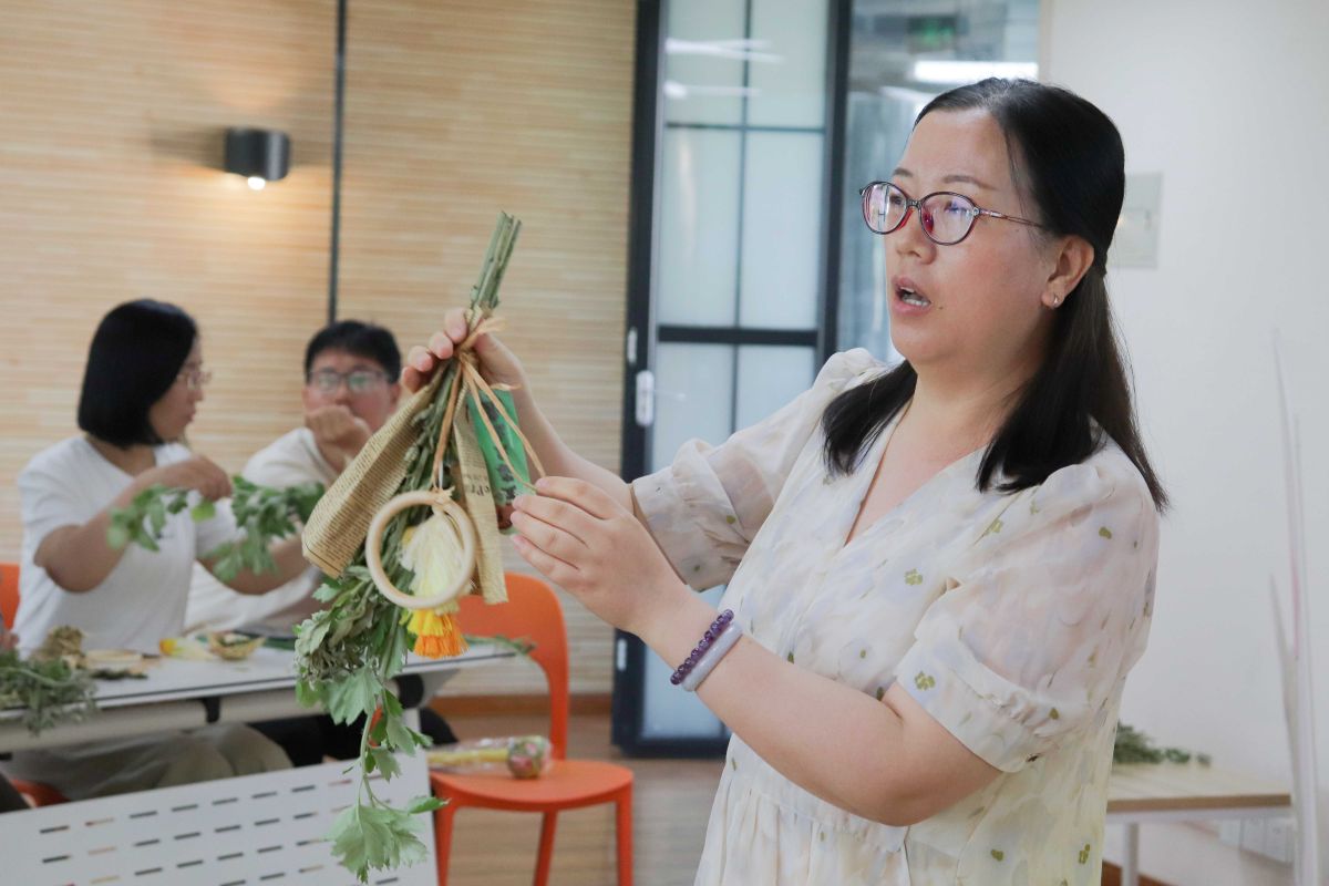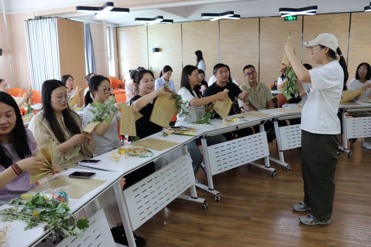 此次“端午‘新国潮’:艾草萦绕,共赴非遗诗意之约”主题活动,让老师们在动手实践中深度体验非遗文化的魅力,感受传统与现代交融的独特韵味。将指尖实践化作文化传承的桥梁,让老师们在沉浸式体验中深度感知非遗技艺的温度与智慧。