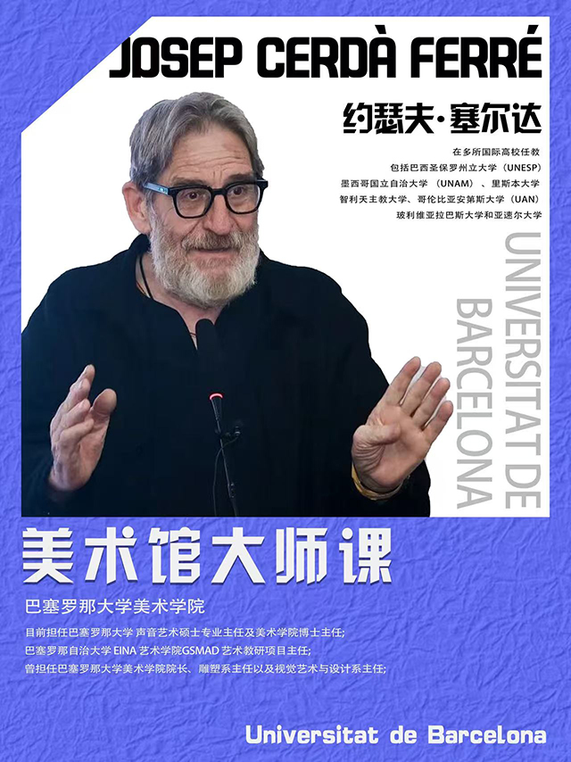盛卓立院长介绍,Josep Cerdà Ferré作为雕刻家,全球各地举办个人作品展17场,集体作品展28场,展览地包括巴塞罗那、巴黎、安道尔等;设计建造公共雕塑10座(位于巴塞罗那、罗马尼亚、沙特、约旦、阿曼、安道尔等地);受邀世界各地参加众多展会、沙龙等艺术活动,在多地博物馆拥有永久收藏作品及私人作品集;参与12项重大工业模型和雕塑模型设计拥有一项行业专利;参与五场舞台布景8项艺术展示方式设计;曾参加多所大学举办的专家座谈会,研讨会等重大会议(Azores大学,巴西圣保罗埃斯塔杜阿尔保利斯塔大学等);在多个现代艺术中心开设课程和讲习班(毕尔巴鄂古根海姆博物馆,约旦国际雕刻艺术研讨会等);自2001年领导巴塞罗那大学Ouroboros-Fbg环境雕塑工坊,在Colserola公园完成32座雕塑,入选Bienal Europea del Paisaje展览以及米兰Trienale展览。和建筑师Enric Ruiz-Geli合作进行萨拉戈萨2008年世博会Sed展馆穹顶研究。现阶段主要从事声音艺术和声音装置研究工作。