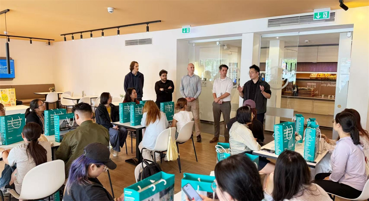 德国时间13:45,航班准时降落杜塞尔多夫机场。提取行李出口,FOM大学教师团队手持定制接机牌迎接,师生统一乘坐大巴前往埃森市。一路上,鲁尔区百年矿井架与现代艺术区的碰撞,莱茵河的波光与工业遗迹交织成独特的风景,拂去了游学团师生的疲惫。