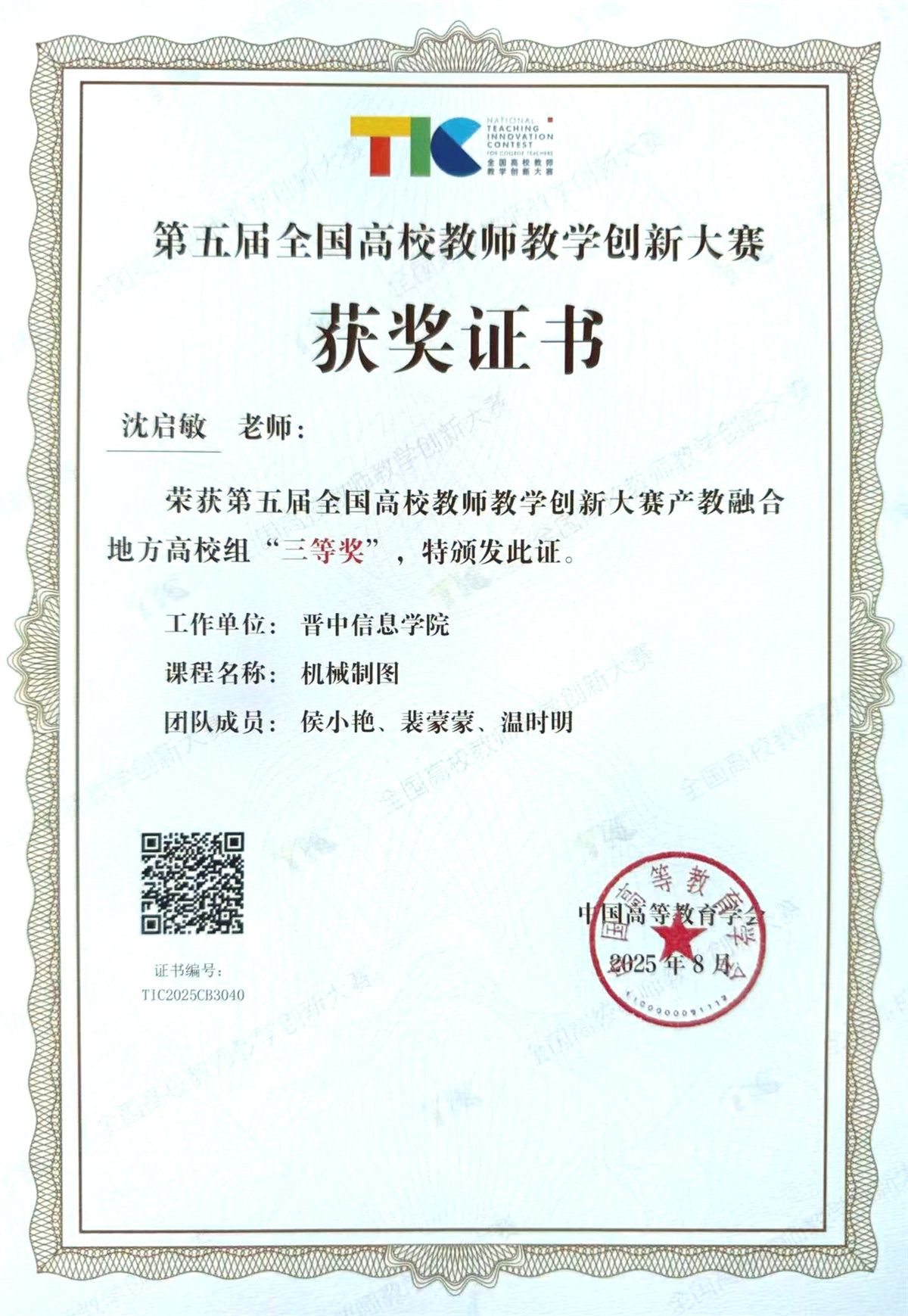 8月16—19日,由教育部高等教育司指导、中国高等教育学会主办的第五届全国高校教师教学创新大赛全国现场赛在北京理工大学举办。我校智能工程学院沈启敏团队喜获产教融合赛道全国赛三等奖,取得历史性突破佳绩。