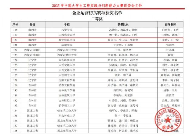为深入推进学校“教育教学三提三创”主题年活动,8月5日,我校智能工程学院与淬炼商学院的3支参赛队伍经省赛组委会层层选拔,凭借突出的综合实力成功跻身2025年中国大学生工程训练与创新能力大赛全国赛场。赛场上,面对来自全国各地的强劲对手,我校参赛队员沉着应战,凭借扎实的专业知识功底与过硬的创新实践能力从容比拼,最终在智能救援赛道获得全国一等奖,在太阳能电动车赛道、企业运营仿真赛道均获得全国二等奖,用优良的成绩为学校赢得了荣誉。此次多赛道获奖,不仅是对参赛师生辛勤付出的肯定,更充分彰显了我校在应用型人才培养领域取得的显著教学成果。