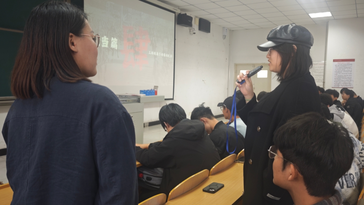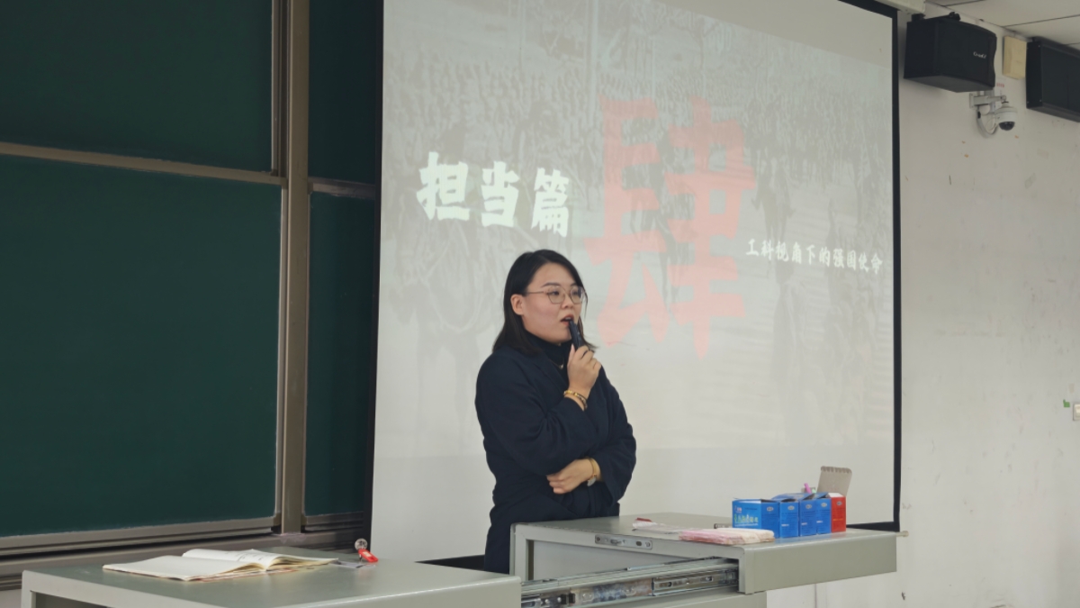 活动最后聚焦“新时代工科青年的强国使命”,进入“担当篇”环节。国画老师带领同学们回顾前辈工科人在技术荒原突围、攻克“卡脖子”技术的奋斗史诗,引导大家思考“当下工科人该如何扛起使命”。现场学子纷纷起身发言:在学校部门任职的同学提出“以服务凝聚集体,以责任助力校园发展”;扎根实验室、参与学科竞赛的同学表态“深耕专业领域,争取技术创新突破”;学生干部则强调“发挥带头作用,带动身边同学共同为科技报国积蓄力量”。