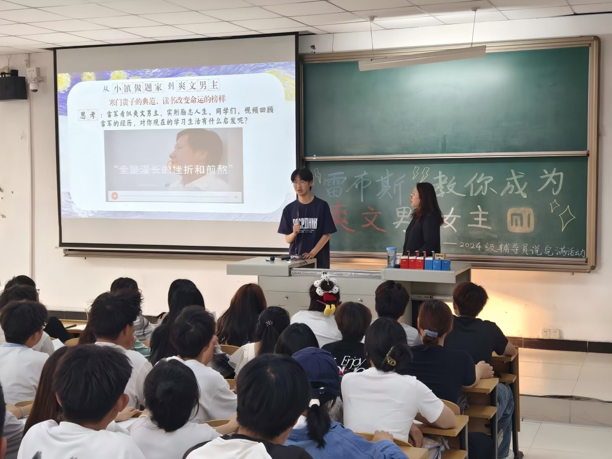 夏日的微风轻拂过教室的窗棂,窗外蝉鸣阵阵,却掩盖不了教室内洋溢的热情。6月11日17:00,智能工程学院2023级辅导员杜岩涛老师在博学楼301教室开展了以“成为自己的灵魂摆渡人”为主题的辅导员说完满活动,2023级200余名大二学生,目光聚焦在讲台上。这场聚焦“自我成长”的心...