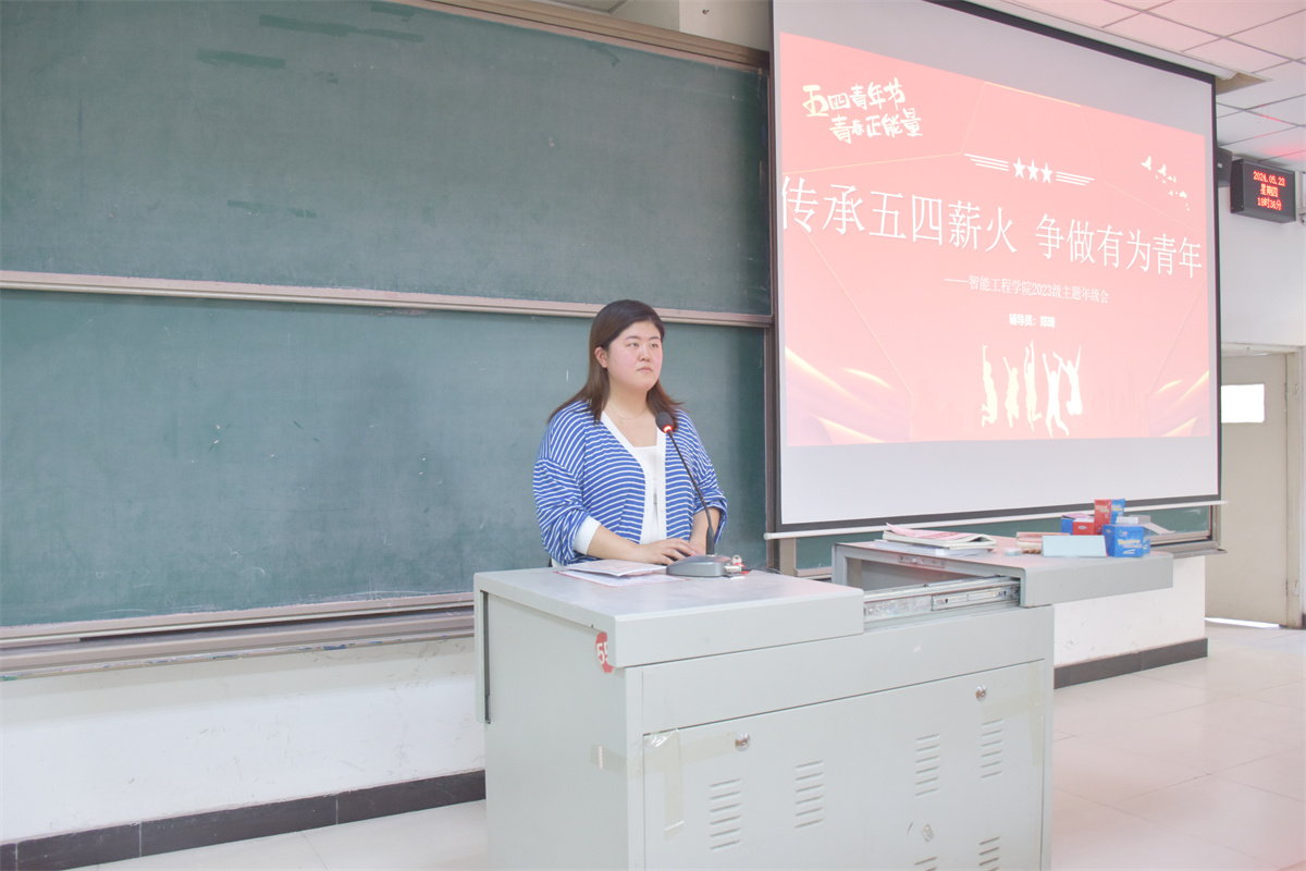 聚青年之火,燃时代之光。站在时代的前沿,青年是国家的未来、民族的希望。为发扬工科学子的爱国情怀,增强责任感和使命感,激励他们以创新精神和高涨勇气,投身社会主义现代化强国建设。智能工程学院辅导员郑琦老师于5月23日18:00在二号教学楼104教室开展以“传承五四薪火,争...