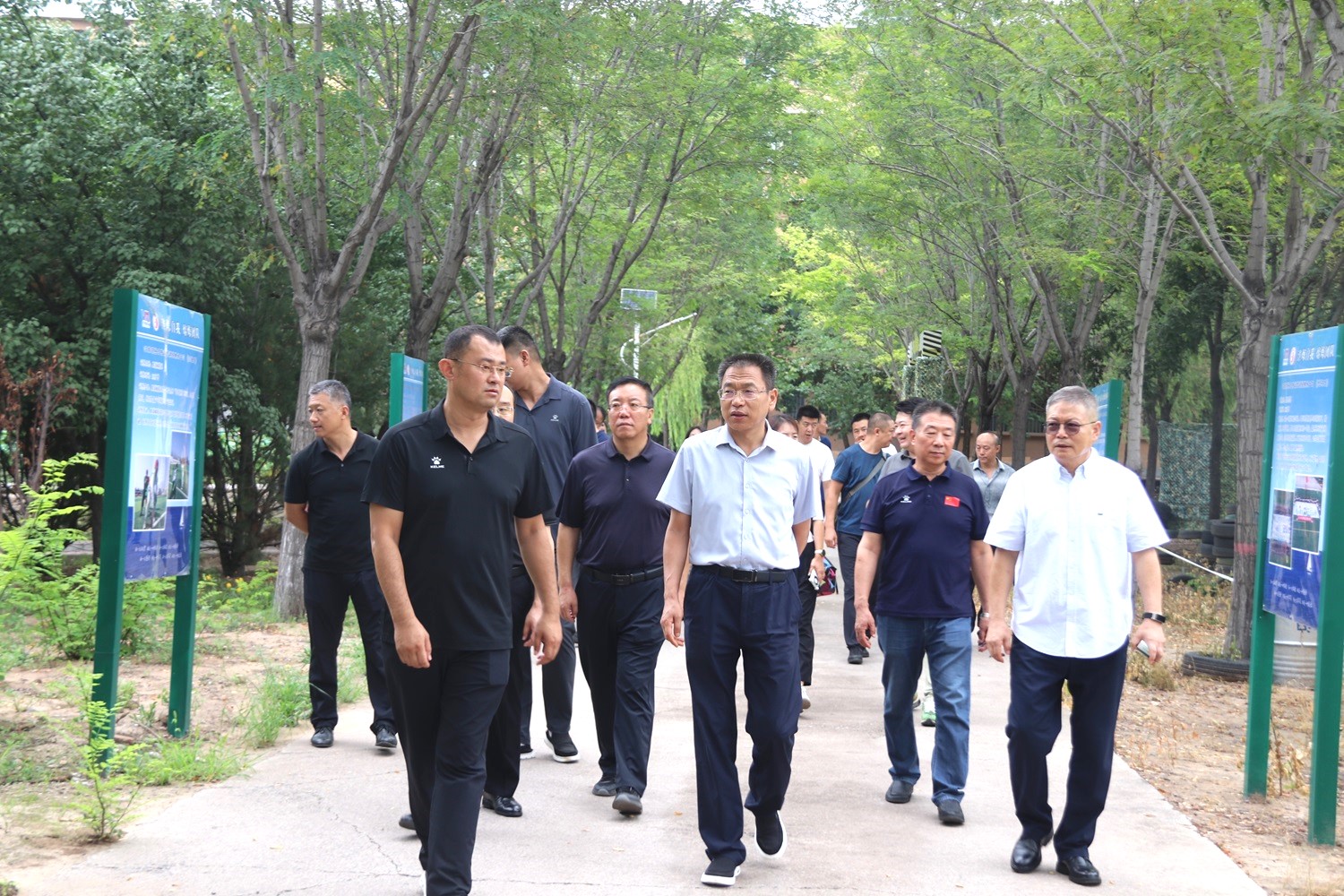 郁效军书记一行首先在学校进行了走访调研,参观了行健馆、形意拳中心、非遗展览馆、体育公园等场地,过程中深入了解了学校的体育设施和场地建设情况,以及比赛场地现场布置、环境卫生整治和后勤服务保障等各方面具体安排。