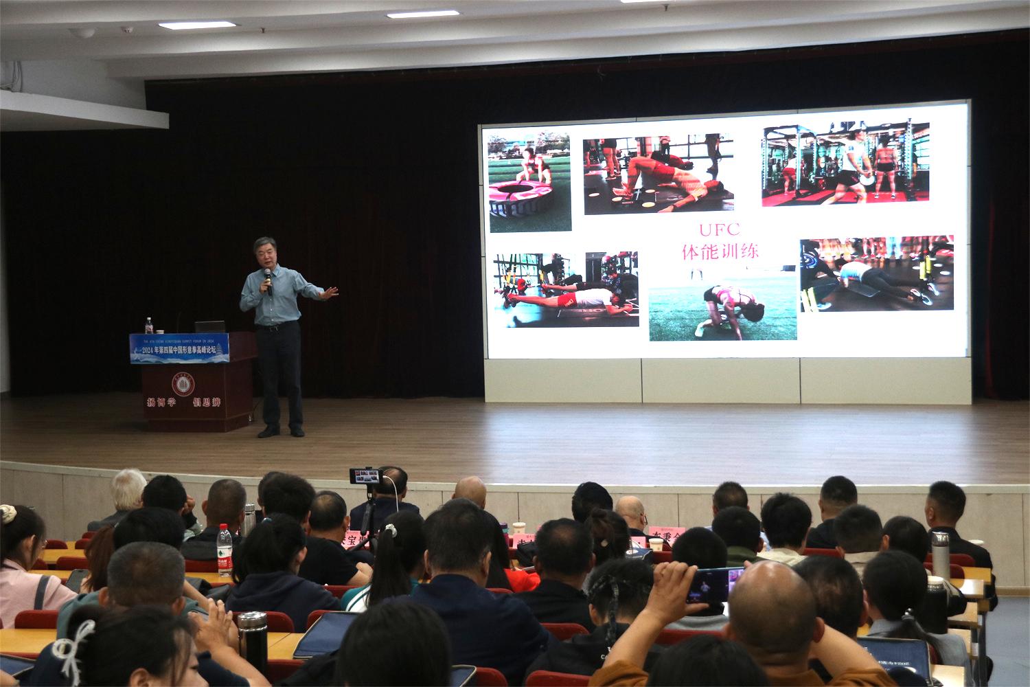 特邀嘉宾围绕论坛主题相继作专题报告。陈小平教授就“当代运动训练发展与中华武术”为题,从运动训练的三个阶层,即运动理念、负荷、方法三方面展开阐述,深入剖析了运动负荷理论的发展历程,提出“以科学化为核心,以数、智化为杠杆”的理念,并强调科学创新是始终古哲学思想的深层联系引领世界竞技体育发展的重要因素;刘定一教授致力于对形意拳传统文化的传播与推广工作,他指出形意拳理论研究的现状,对形意拳的发展传承给予建议并提出期望,为学者们提供了新的形意拳传播思路。