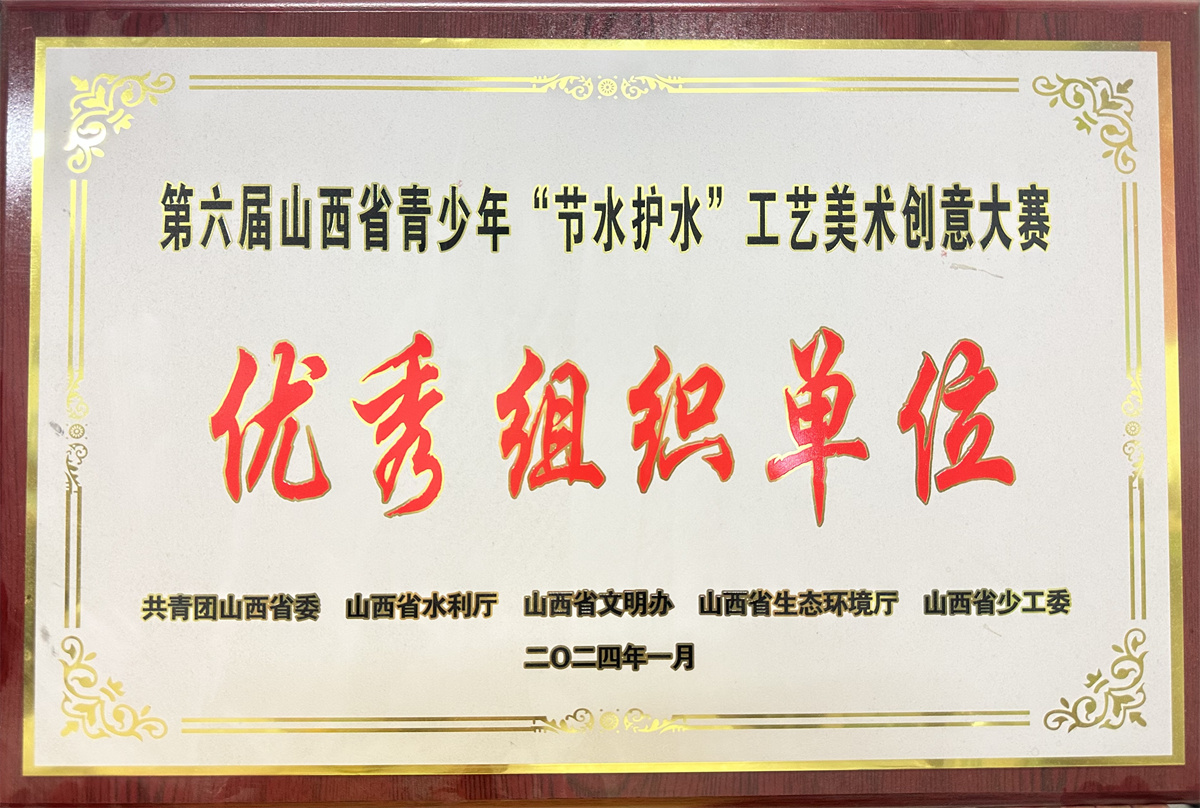 学校荣获第六届山西省青少年“节水护水”工艺美术创意大赛“优秀组织单位”