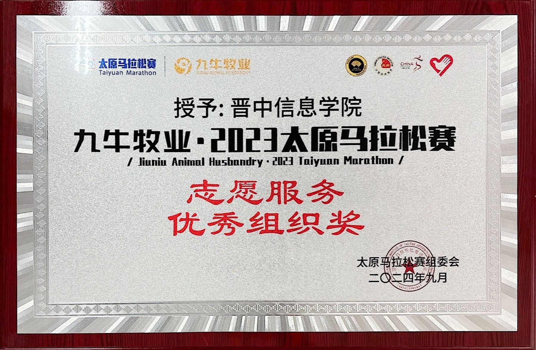 学校荣获2023年太原马拉松志愿服务优秀组织奖